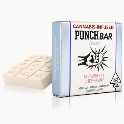 This award winning flavor starts with a layer of white chocolate, then we add freeze dried strawberries to the middle, top it off with another layer of white chocolate, and leave you with a delectable treat that you can’t get enough of. Punch brings you an award-winning edible that tastes great and comes in a sensible size. Each serving will leave you feeling both euphoric and relaxed, a great way to start your day off or wind down after work. 9 servings per pack. Each serving contains 10mg of THC. Ingredients: white chocolate wafers, freeze dried strawberries, strawberry extract, cannabis extract, 1-2% nonfat milk. Dietary information: made from a non-GMO chocolate with no hydrogenated oils, gluten free, manufactured in a facility that also processes tree nuts, contains freeze dried strawberries.