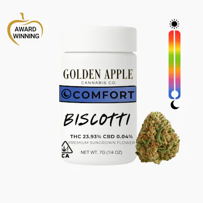 Winner – 2025 Mendo Cup for Best Flower! Biscotti wraps you in warmth and ease, offering both mental serenity and body comfort. The euphoric onset mellows into a state that is cozy and emotionally grounding. Cultivated by: Sweet Sisters Family Farm. Cannabinoids: THC: 23.93% | CBD: 0.04%