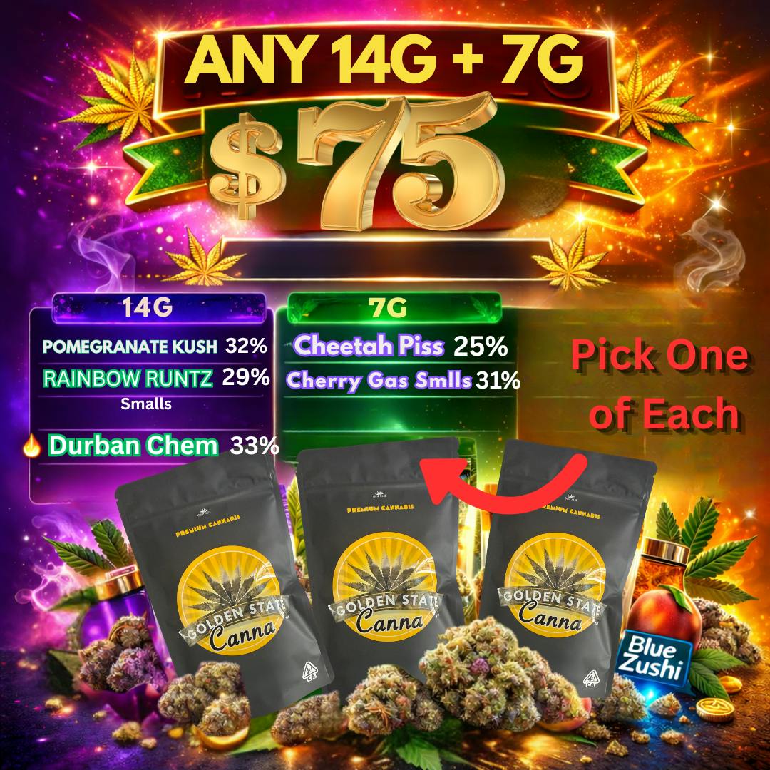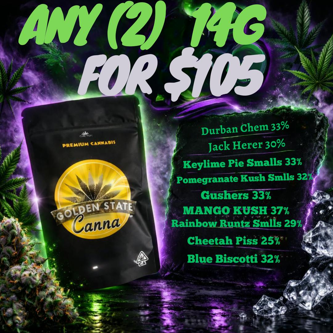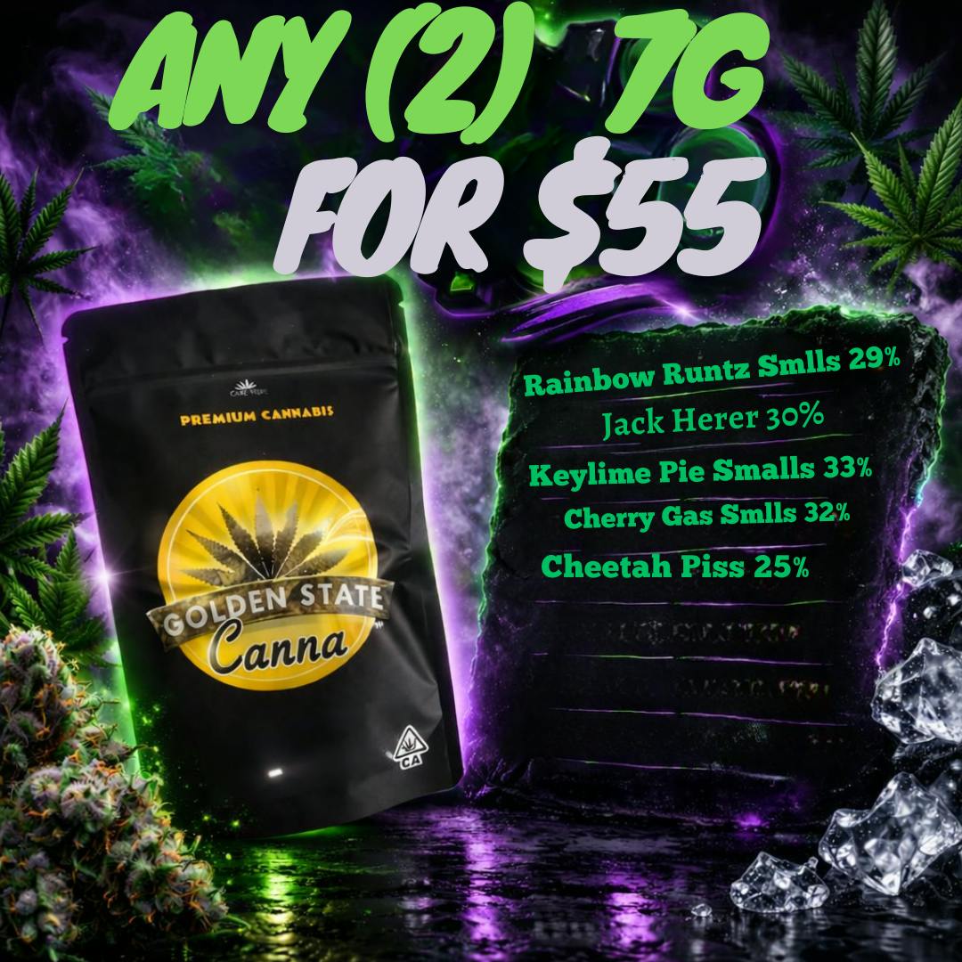 Join us at Golden State Canna as we unveil our collaboration with the new 22 West Co. delivery! We have a shared goal of maintaining the vibe of the old school cannabis game and with that comes affordable prices on high quality flower ranging from sungrown to light dep to indoor! We take great pride in procuring the best flower from farms across the Golden State and our great connection with farms allows us to deliver great pricing to our customers. Everything we buy is tested by state licensed labs in order to ensure the utmost quality to all of our clientele. Have a dank day!