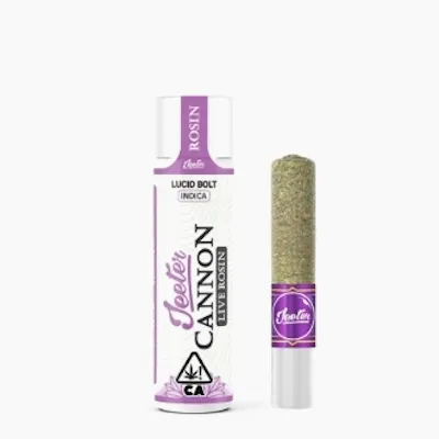 Beach Bum - SativaIntroducing a new Cannon to the arsenal. Jeeter Solventless Cannons combine the artisanal live rosin experience with top-quality flower, meticulously chosen to deliver a nuanced, connoisseur smoking experience. Live Rosin is a natural solventless cannabis concentrate derived from pressing ice-water hash. This process yields a concentrate that offers perhaps the truest flavor experience of cannabis, as it gently extracts aromatic compounds without degradation.- Premium Flower- 1 Cannon totaling 1.3 Grams- 100% Live Rosin