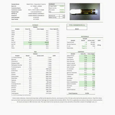 AltSol – Gelatti Mints Disposable Vape (0.5g) Strain Type: Balanced Hybrid Genetics: Gelatti × Kush Mints Flavor Profile: Mint Cookie • Sweet Gas • Earthy Gelato Smooth. Balanced. Chill with a Minty Twist. Gelatti Mints delivers the best of both worlds—creamy Gelato genetics kissed with icy mint and gas. In this expertly extracted 0.5g disposable from AltSol, you get full-spectrum flavor and balanced hybrid effects ideal for anytime use. The flavor is rich and cooling, with sweet dough and minty backend. Effects are mentally uplifting with a physically grounding calm that doesn’t sedate—just smoothes out your edges. How It Feels: - Mellow head high with functional clarity - Body relief without heavy sedation - Relaxed and elevated, not overwhelmed Recommended For: - Midday stress relief and mood support - Social settings and creative thinking - Balanced effects without the burnout Now at Green Theory – Gelatti Mints is your daily driver for chill flavor and feel-good flow.