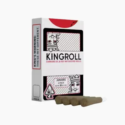 Kingrolls are kief-coated pre-rolls made from our premium whole nug flower and infused with Kingpen's award-winning, high potency cannabis oil. * Moonbow X Rainbow Belts #9 * GG4 X Zookies #9 * Biscotti X Lemon Cherry Gelato #9 * Gradi Guava X Grapefruit Romulan #9