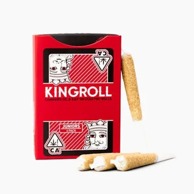 From the legendary brand Kingpen, Kingrolls are premium joints made with only whole nug flower, infused with Kingpen cannabis oil and coated in golden kief. Kingrolls are highly potent, handcrafted, flavorful pre-rolls available in a variety of complimentary flower and oil strain combinations as well as sizes for every kind of sesh.