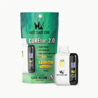 Unleash a burst of sunshine with WCC's Lemon Sorbet 1g Live Resin CUREbar 2.0. This sativa-dominant, one-gram vape offers a vibrant, uplifting experience, perfect for starting your day on a bright note. Ready to savor the zest? Indulge in Lemon Sorbet and let its sunny disposition brighten your world.
