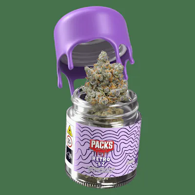 A premium small-batch flower offering presented in a collectible-style jar, featuring carefully selected indoor-grown buds with strong terpene expression and standout bag appeal. Product Highlights: Packaging: Glass jar (“Retro 1z” series) designed to preserve freshness and terpenes Quality: Typically hand-trimmed, slow-cured buds selected for potency, aroma, and visual appeal Jar packaging helps maintain moisture balance and protect terpene integrity, keeping the flower fresh over time Flavor & Aroma (Varies by Strain): Can range from sweet, fruity, or dessert-like to gassy, earthy, or citrus-forward Generally known for loud, well-preserved terpene profiles due to sealed jar packaging Experience Profile (General): Typically potent and full-spectrum, depending on strain selection Effects may range from uplifting and creative to relaxing and body-heavy Designed for a premium, smooth-smoking experience About Packs “Retro 1z” Series: Focuses on presentation + quality, combining top-shelf flower with collectible-style jars Often features rotating strains, so flavor and effects can vary batch to batch Aimed at consumers who value freshness, terpene preservation, and aesthetic packaging Overall: The Retro 1z 3.5g jar stands out as a premium packaged eighth, offering high-quality flower with strong aroma, solid potency, and a curated feel—ideal for those who want both presentation and performance.