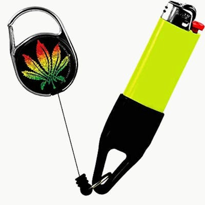 The Lighter Leash (Rasta Series) is a retractable holder for a standard-sized lighter, It's a functional accessory for keeping your lighter secure and easily accessible while adding a distinct visual style. Now available at High Demand Capitol HIll.