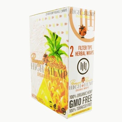 High Hemp Organic Pineapple Paradise Wraps are the first of its kind! With a smooth tropical aroma, as you open the pouch, you'll quickly fall in love. Using only natural pineapple flavor, you'll instantly smell the difference. Roll up the tropics this summer with High Hemp Pineapple Paradise. 2 Wraps & 2 Tips Per Pouch.