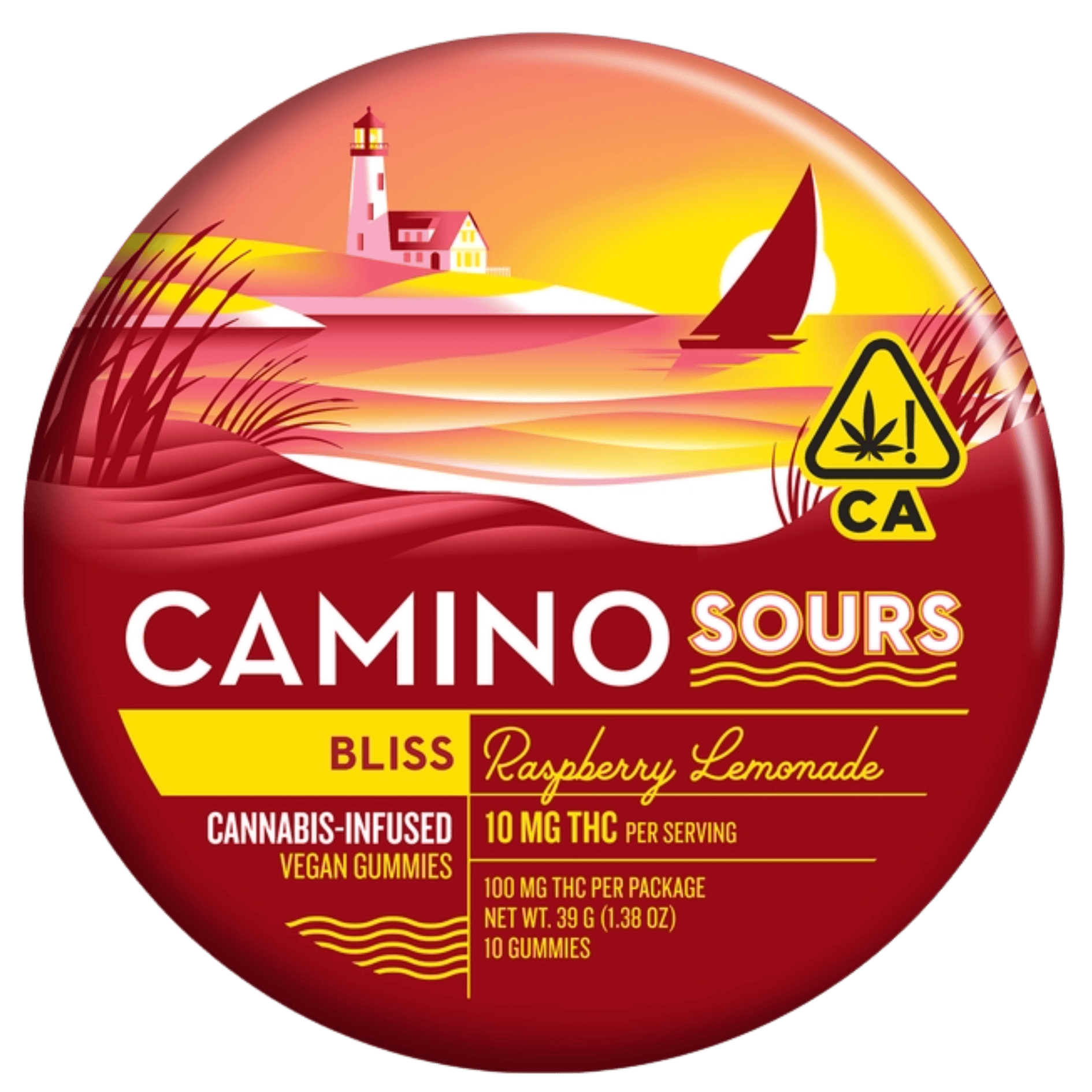 10mg THC Per Piece | 100mg THC Per Package For those moments when you want to make a great experience even more joyous—like hanging with friends at the beach or enjoying a comedy show— enter Camino Sours Raspberry Lemonade Bliss gummies. These delightful treats are designed to boost your mood and create a blissful experience no matter where you are and what you’re up to. Each delectable gummy is infused with 10MG of THC and a tailored blend of hybrid-like terpenes that marries perfectly with the sweet, tangy notes of ripe raspberries and the flavors of fresh, sugary lemonade. Welcome to your happy place! HYBRID-LIKE TERPENES: BETA-CARYOPHYLLENE, HUMULENE, LIMONENE, MYRCENE, NEROLIDOL