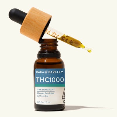 Our most potent THC formula, the THC1000 tincture provides powerful relief from discomfort and helps with unwinding and relaxation. Best for highly experienced cannabis consumers. Crafted with only two ingredients, MCT Oil and cannabis oil, and can be felt within 15 minutes, making it a perfect natural solution for those seeking a quick-acting, easy-to-use cannabis solution to improve both body and mind. ? Papa & Barkley’s tinctures are vegan and fast-metabolizing, with a customizable dosage experience, carefully crafted with whole-plant extraction. Our solventless, chemical-free infusion process preserves the plant’s full spectrum of cannabinoids, terpenes, and phytonutrients for maximum therapeutic benefits.