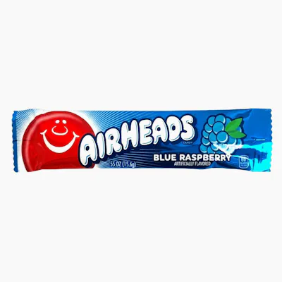 **NON-CANNABIS ITEM, ZERO THC** Nothing beats the tremendously tangy, playfully chewy chew of Airheads candy! An instant smile inducer with a variety of intense fruity flavors. INGREDIENTS: SUGAR, CORN SYRUP, MALTODEXTRIN,DEXTROSE,MODIFIED CORN STARCH (CORN),PALM OIL. CONTAINS LESS THAN 2% OF: CITRIC ACID,WATER,ARTIFICIAL FLAVORS,RED 40,BLUE 1,YELLOW 6,YELLOW 5. Disclosure: This Product Contains a Bioengineered (BE) Food Ingredient, Commonly Known As GMO.