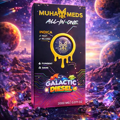 Galactic Diesel is a pungent, dank indica built for deep relaxation. Its bold, earthy diesel flavor packs a punch, while the heavy, hazy effects ease both mind and body into bliss. Ideal for late nights when you want to drift into the cosmos.