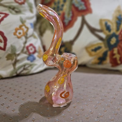 6" Glass Swirl Designed Bubbler Featuring hourglass shape for ergonomic comfort. Fill with water to filter and cool your smoke during inhalation. Fits in the palms of your hands.