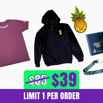 Bundle includes • (L) Humble Root Black Zip-Up Hoodie • (L) Humble Root Salmon T-Shirt • "Something Cool" Gold Necklace • Humble Root Golden Pineapple Pin • Humble Root Lanyard