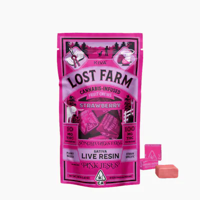 Strawberry Sativa by Kiva Confections stands out in the Lost Farm Chews 100 mg Gummies Edible lineup. This strain delivers a refreshing burst of sweet, fruity flavors reminiscent of ripe berries and apples, complemented by a smooth vanilla undertone and hints of soothing lavender. Users can expect an energizing effect that sparks creativity and enhances mental clarity, making it perfect for daytime enjoyment or social gatherings. Crafted with live resin to preserve fresh terpenes, these gummies are ideal for adventurous cannabis connoisseurs seeking premium edibles with a delectable taste and stimulating effects.