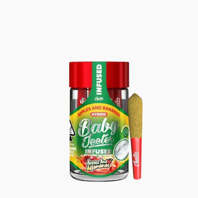 Apples and Bananas Hybrid Balanced by Jeeter is a standout in the Jeeter Infused Baby Jeeter lineup. This delightful strain offers a mellow relaxation that eases tension throughout the body, paired with an uplifting sense of happiness and euphoria that brightens emotional well-being. Expect a sweet and fruity burst reminiscent of berries and apples, complemented by earthy notes of sage that enhance your sesh. Ideal for evenings with friends or solo unwinding, these pre-rolls cater to cannabis enthusiasts looking for a balanced experience in a convenient package.