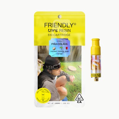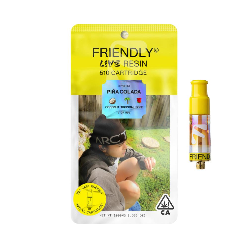 Pina Colada by Friendly is a 1 gram live resin vape that hits like a tropical getaway. Think creamy coconut vibes mixed with sweet rose notes—exotic but never over the top. It’s perfect for daytime sessions, delivering a balanced buzz that lifts your mood without knocking you out. Whether you’re kicking back with friends or sparking up solo for some creative flow, this Hybrid Balanced cart brings the flavor and smooth hits that seasoned users respect.