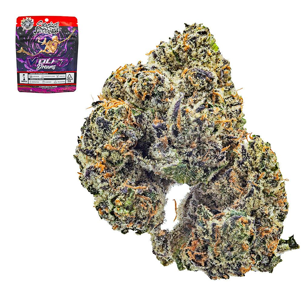 Experience a galaxy of flavor with Violet Dreams—this strain boasts dark purple hues and frosty, candy-like crystals that create a space-like visual experience. As an indica, it gently guides you into a dreamlike state, where sweet tastes and frost-covered nugs leave you questioning whether your experience is too good to be true. Prepare for an out-of-this-world journey as you embrace relaxation and comfort, puffing on this violet dream while your mind soars through the cosmos of bliss!