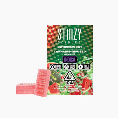 Introducing our new line of STIIIZY edibles. Your favorite live resin infused gummies are formulated with fast-acting nanotechnology in 20 mg pieces. Enjoy the blend of both delicious and mouth watering flavors in every bite. A wave of watermelon flavor in each bite, this relaxing indica is the perfect late night snack!