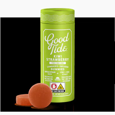 Lean into relaxation and recovery with Good Tide Kiwi Strawberry THC:CBD:CBG gummies. Hybrid single-strain rosin along with an extra boost of CBG are wrapped up with juicy kiwi strawberry flavors to help you fully reset.