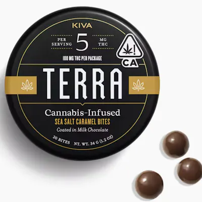 Sea Salt Caramel Terra Bites boast delicious, rich and smooth caramel centers coated in creamy milk chocolate and sprinkled with Pacific sea salt. These bites have a sweet, buttery flavor that finish with a salty kick. Ingredients: Milk Chocolate (Sugar, Cocoa Butter, Milk, Cocoa Mass, Sunflower Lecithin, Vanilla), Tapioca Syrup, Sugar, Cream (milk), Palm Kernel Oil, Sea Salt, Gum Arabic, Cannabis Extract, Natural Flavors, Confectioner's Glaze, Sucrose, Glucose Syrup. Contains milk. Made in a facility that processes nuts, soy and gluten.