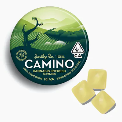 Kick back and transport yourself to wine country with Kiva’s Sparkling Pear Camino gummies. The unconventional ratio of CBD to THC creates a euphoric experience without any anxiety. - TERPENES; • Limonene - Reduces stress, alleviates asthma and allergies, reduces inflammation, and acts as an antioxidant. • Beta-Caryophyllene - May assist with the body's response to anxiety and stress. • Linalool - Anti-anxiety and sedating effects. • Humulene - Provides therapeutic benefits like pain relief, anti-inflammatory effects, and can act as an appetite suppressant. • Nerolidol - Provides a wide range of therapeutic properties including anti-ulcer, antioxidant, anti-fungal and anti-inflammatory. Delivers anti-anxiety effects without hampering coordination.