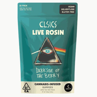 An irresistible indica with powerful soothing effects, a puff of CLSICS proprietary Berry Prism shines you through glass, illuminating your energy as vibrant hues. Its sweet berry flavor is produced from a combination of Grapes ‘N’ Cream and Ghost Vapor OG. This euphoric strain is ideal for evening hours; perfect for sparking creativity, relieving anxiety, and a great night’s sleep. If you're looking for a potent gummy that gives a full-body, full-spectrum high, and also tastes amazing, then look no further. 100% SOLVENTLESS and made with all-natural ingredients, no artificial coloring, and or flavoring, each gummy is infused with high quality LIVE ROSIN cannabis oil to provide a superior experience when compared to "regular” THC gummies. 10 pieces 10MG per piece 100MG per package