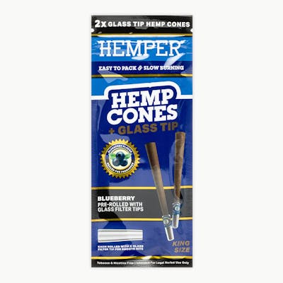 BLUEBERRY HEMP KING SIZE CONE WITH GLASS TIP 2PK