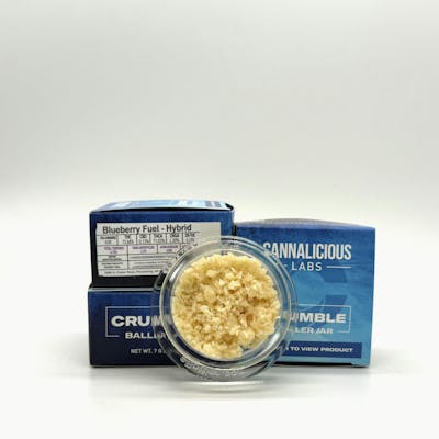 Cannalicious Crumble Baller Jar Hybrid Blueberry Fuel 7g blends the sweet, fruity essence of Blueberry with the sharp, gassy punch of classic fuel strains, likely from a lineage such as Blueberry x Jet Fuel. This hybrid concentrate features a terpene profile rich in Myrcene, Caryophyllene, and Limonene, delivering a smooth mix of cerebral uplift and physical ease. Ideal for anytime use, Blueberry Fuel is great for creative sessions, social hangouts, or unwinding without heavy sedation.