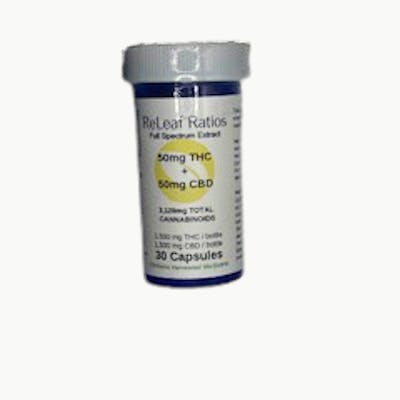 50mg THC: 50mg CBD Capsules (30 Per Bottle)