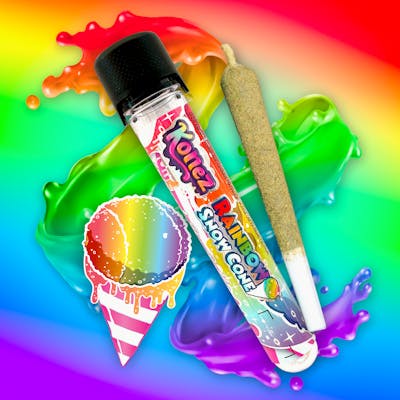 KONEZ Rainbow Snow Cone flavored infused pre roll. Made with premium cannabis flower, kief and oil to bring a high THC potency for a maximum high! 1.2g Total Weight.