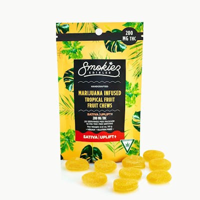 Now infused with Sativa cannabis terpenes! Smokiez Sativa Tropical Fruit Fruit Chews areΒ NOT YOUR AVERAGE GUMMYβ’