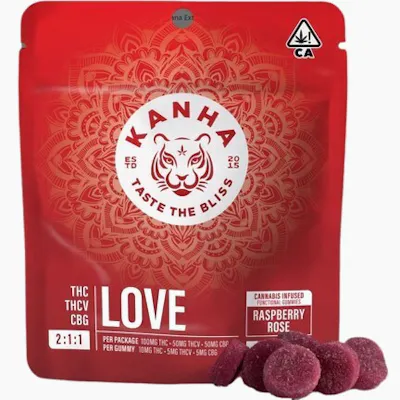 Kanha FX NANO Gummies Love Raspberry Rose 100mg THC / 50mg THCV / 50mg CBG