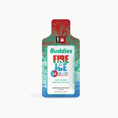 Buddies Fire & Ice Lotion. Introducing Buddies Fire & Ice Single-Use Lotion Packets, a convenient and invigorating solution designed to enhance your self-care routine. These single-use packets combine the refreshing sensations of fire and ice, offering a unique and revitalizing experience. With Buddies Fire & Ice Single-Use Lotion Packets, you can enjoy the benefits of a soothing lotion in a hassle-free format. Each packet contains a precisely measured amount of lotion, ensuring easy application without any mess or waste. Buddies Fire & Ice Single-Use Lotion Packets are designed for convenience and ease of use. The compact packets are perfect for on-the-go application, allowing you to enjoy the benefits of fire and ice wherever you are. Simply cut open a packet and apply the lotion directly to your skin for a refreshing and invigorating experience. Contains ~20mg THC Contains ~20mg CBD Learn more about Buddies Brand by clicking this link.