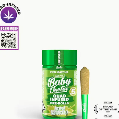 Iced Matcha | Baby Jeeter | Sativa 5 x 0.5G Joints 2.5G Total Quad-Infused | Premium Flower Infused with THCa Diamonds, Rosin, & Kief