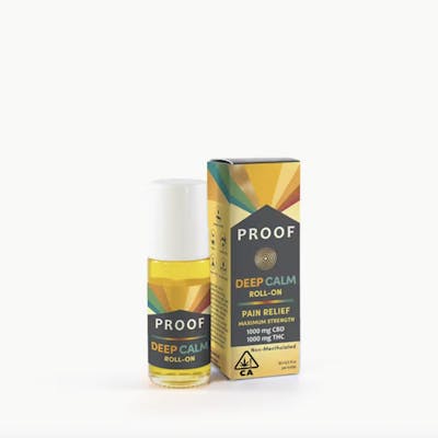 Deep Calm Roll-on provides fast-acting maximum strength pain relief that helps soothe sore muscles and joints. With a clean, natural (non-mentholated) scent you can use this topical anytime without smelling medicinal. Easy-to-use roller top massages in oil and keeps hands clean. Ingredients: Jojoba oil, rosehip oil, cannabis oil, arnica oil (arnica flower extract, sunflower seed oil), copaiba balsam essential oil, grapefruit essential oil, frankincense essential oil, bitter almond fragrance oil. 1000 mg THC + 1000 mg CBD per bottle