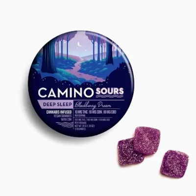 You know that feeling when your mind is racing, and the demands of the day refuse to loosen their grip and let you fall asleep? That's when you reach for Blackberry Dream Deep Sleep Camino Sours vegan gummies. Each sweet blackberry gummy is dusted in sour sugar and contains a tailored blend of 10mg THC, 10mg CBD, and 10mg CBN along with chamomile and lavender extracts plus indica-like terpenes to create a state of serene slumber. CBD, celebrated for its subtle, soothing qualities, creates a gently euphoric experience that helps the body unwind. CBN, especially when combined with THC, is often appreciated for its ability to create a sense of calm and tranquility. The enchanting blackberry flavor adds a touch of sweet, fruity indulgence to your nightly ritual, setting the stage for a soothing bedtime routine. These gummies aren't just a delightful treat; they help promote a powerfully tranquil night and a revitalized wake up so you can conquer the day ahead. Terpenes: Beta-Caryophyllene, Linalool, Myrcene