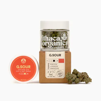 Lineage: Grapefruit Chem x Piff Coast Sour Diesel G. Sour (aka Grapefruit Sour) is a rare cultivar bred by Piff Coast Farms, created through a potent cross of Grapefruit Chem x Piff Coast Sour Diesel. This cultivar features a unique sour diesel profile, layered with spicy notes, berry undertones, and a distinct citrus grapefruit aroma. This intriguing combination delivers a vibrant flavor that is both tangy and sweet, creating a refreshing dynamic experience for the palate. Perfect for creative pursuits, socializing, or sparking inspiration. At Ithaca Organics Cannabis Co., we prioritize quality over quantity by growing small-batch cannabis with rich terpene profiles, bold aromas, and standout flavors. For generations, our family has farmed the Finger Lakes, cultivating certified organic produce and hemp with the same dedication we now bring to every cannabis plant.