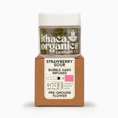 Our Strawberry Sour infused ground flower is a premium 7g blend combining small-batch, terpene-rich flower with solventless bubble hash for a boosted, full-spectrum experience. Its flavor bursts with ripe strawberry sweetness layered with bright citrus and tangy grapefruit, rounded out by a subtle sour finish. The effects strike a balanced, uplifting tone, delivering a euphoric head high with a smooth, calming body feel. Ready to roll and crafted for consistency, it’s an easy, elevated way to enjoy our small-batch cannabis. At Ithaca Organics Cannabis Co., we prioritize quality over quantity by growing small-batch cannabis with rich terpene profiles, bold aromas, and standout flavors. For generations, our family has farmed the Finger Lakes, cultivating certified organic produce and hemp with the same dedication we now bring to every cannabis plant.