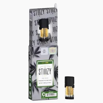 Introducing the STIIIZY 1:1 CBD pod that offers an equal ratio of CBD and THC!Taste: Herbal Mango SweetFeeling: Relaxing Euphoric UpliftingFacts: A 1:1 pod that offers an equal ratio of CBD and THC infused with fresh mango flavor