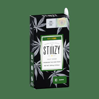 Introducing the STIIIZY 1:1 CBD pod that offers an equal ratio of CBD and THC!Taste: Herbal Mango SweetFeeling: Relaxing Euphoric UpliftingFacts: A 1:1 pod that offers an equal ratio of CBD and THC infused with fresh mango flavor