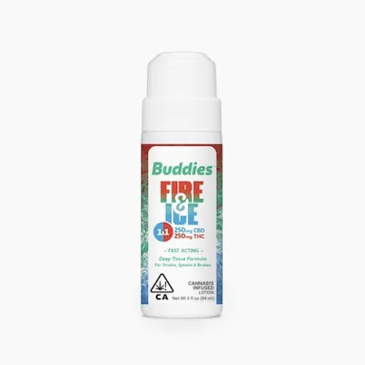 Buddies award winning Fire & Ice Topical. From athletes to grandmas this 1:1 (250mg CBD/250mg THC) topical does wonders for wellness. Fire & Ice is all natural has therapeutic strength and is long lasting. It is non-greasy has an easy roller application and is enhanced with organic essential oils.