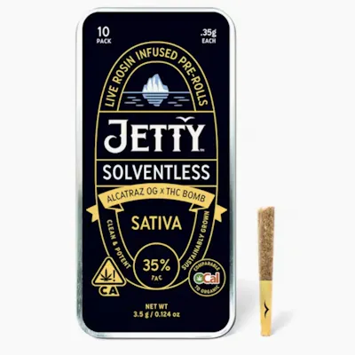 Alcatraz OG x THC Bomb | 10-Pack Solventless Pre-Rolls | Jetty Extracts
