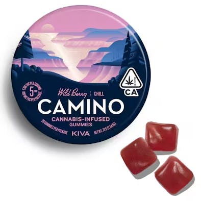 We all know what it feels like to be overwhelmed. Cramming for college exams, meeting the demands of a high-pressure work environment, keeping up with endless chores, errands, and childcare responsibilities - though the experiences might seem distinct, the feeling is much the same: overwhelming stress and tension. Wild Berry “Chill” is crafted for those moments when you need to relax and reset yourself. Each gummy offers a serene escape with THC providing a gentle euphoria to help calm both mind and body complemented by indica-like terpenes for a mellow feeling. As you indulge in the sweet, irresistible berry flavor, feel the tensions of the day melt away with Wild Berry “Chill” Camino gummies. THC interacts with the body's endocannabinoid system (ECS), influencing neurotransmitter release and binding to cannabinoid receptors, potentially contributing to feelings of relaxation. Its effects on stress response and muscle tension may also promote a sense of calmness and physical ease. Indica-like terpenes promote both relaxation and stress relief. As you indulge in the sweet, irresistible berry flavor, you’ll feel the tensions of the day melt away with Wild Berry “Chill” Camino gummies. Kiva's Wild Berry Camino gummies combine calming indica terpenes with notes of wild blackberry and fresh raspberries for a laid-back weekend vibe. Take a stroll through California’s Pacific Northwest and relax awhile. 20 servings per package. Each serving contains 5mg THC. Gluten-free and Dairy-free. The name Camino was inspired by the historic El Camino Real, the 600 mile California road that connects some of the most beautiful and inspiring landscapes in the state. Each flavor of Camino was designed to transport you to a specific location and put you in a “California State of Mind.” 20 pieces @ 5mg each / TERPENES: Beta-Caryophyllene, Linalool, Myrcene, Humulene, Terpinolene / INGREDIENTS: Organic Tapioca Syrup, Sugar. Gelatin, Malic Acid, Natural Flavors, Citric Acid, Cannabis Extract, Fruit and Vegetable Juice for Color, Natural Terpenes, Coconut Oil, Carnauba Wax.