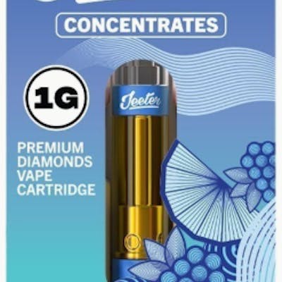 Blue ZKZ Jeeter Concentrates Diamonds Vape Cartridge: 1000mg | Indica | Blue ZKZ is an indica cross of Blue Diamond and Zkittlez. This odoriferous flower offers a terpene profile of tart citrus, sweet earth, and wildflowers. The physical effects of this strain are mellow and moderately sedating, igniting appetite while weighing on the limbs. Its strong physical effects and uplifting mental high make it a perfect end-of-the-day strain and a nice match for folks contending with stress, restlessness, and pain / FLAVORS: Blueberry, Berry, Sweet.