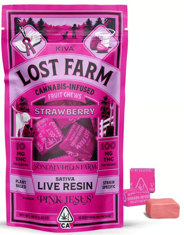 KIVA: Lost Farm Chews Strawberry Pink Jesus 10-Piece/100mg (S)