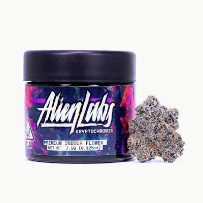 KryptoChronic ((Fruity Pebbles OG x Alien Cookies) x Jet Fuel Gelato) is a vibrant lime green with purple undertones and bright orange pistils. Tastes and smells like you put gas in your bowl of fruity pebbles instead of milk.