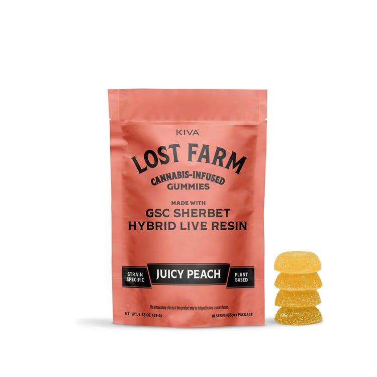 Kiva Lost Farm Live Resin Gummies GSC Sherbet Juicy Peach