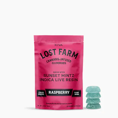 Kiva Lost Farm Live Resin Gummies Raspberry Sunset Mintz