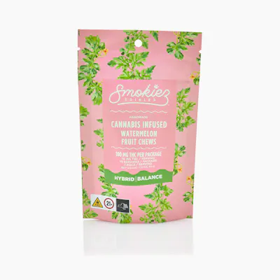Smokiez Sweet Watermelon Fruit Chews are NOT YOUR AVERAGE FRUIT CHEWS™ 😉 These fruit chews taste like a ripe and juicy watermelon, with a pleasant balance of sweetness and fruity notes. These delicious fruit chews are a tasty and discreet way for you to consume! They are also Vegan, Gluten Free, Dairy-Free, and contain NO High Fructose Corn Syrup. Each of our mouth watering fruit chews contain 10 mg of THC, and made with our high clarity cannabis distillate for great taste. There are 10 pieces per package with 100 mg active THC per package. Smokiez 100mg THC Fruit Chews come in 3 delicious flavors and have both sweet and sour flavor profiles