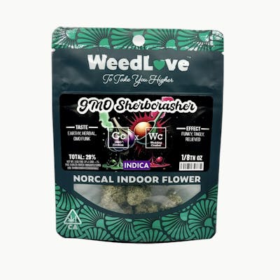 CA State Fair Silver Medal winner 2023 and repeated in 2024! Mercy Grown in Sonoma County! GMO Sherbcrasher is an indica dominant strain that produces aromas of fresh baked pastries sprinkled with dark chocolate and a touch of black pepper. The feeling is one of comfort, arousal, and slightly tingly throughout the body.